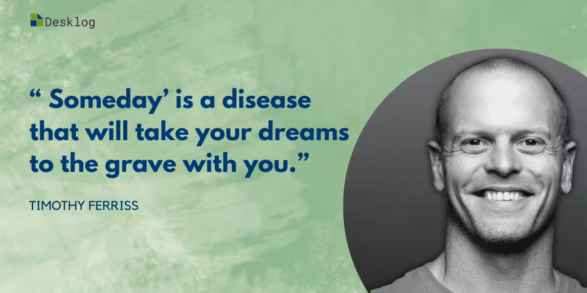 Timothy Ferriss’s quote about time miserably warns against the procrastination trap often associated with the word “someday.” We all have been there, I guess. By perpetually delaying our dreams and aspirations to an uncertain tomorrow, we risk the possibility of never seeing them at all. Ferriss metaphorically describes “someday” as a disease that can rob us of the opportunity to pursue our passions and goals.
