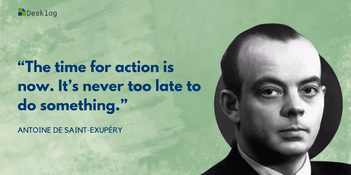 9. “The time for action is now. It’s never too late to do something.” – Antoine de Saint-Exupéry