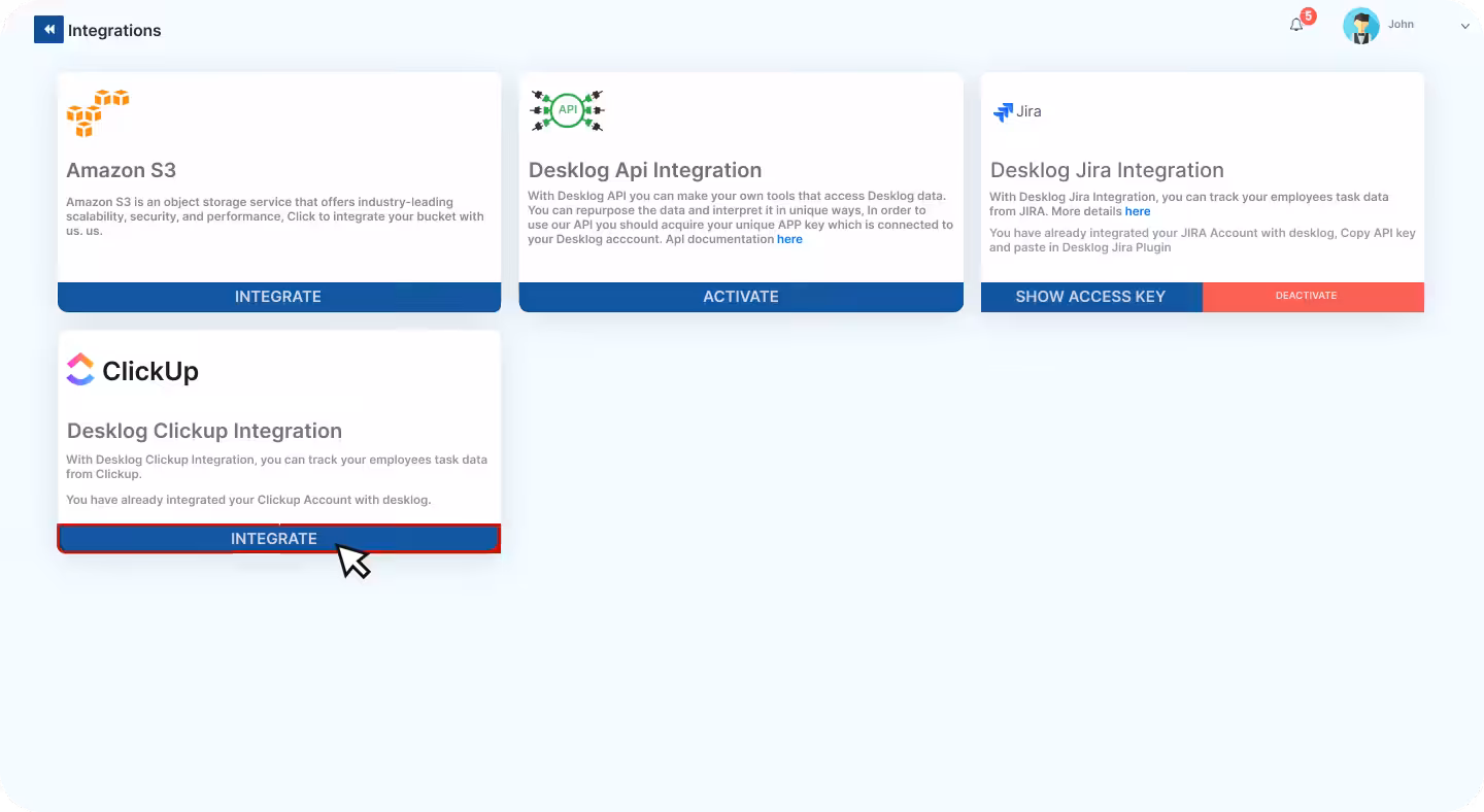 Step-by-Step Guide to Integrate Desklog with ClickUp