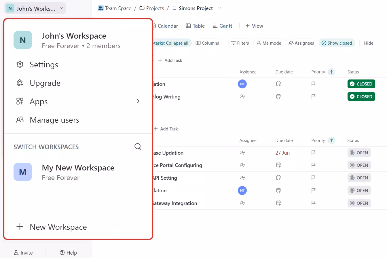 5. Open your ClickUp dashboard and access your workspace.