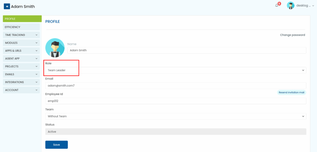 When adding members to Desklog, you can assign specific roles to each member. While entering their information, you’ll find the “User Role” option, where you can assign the appropriate role for each individual.