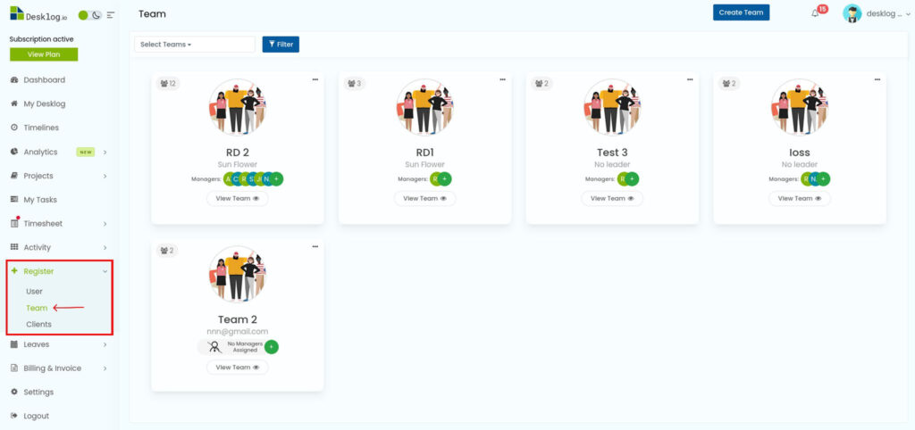 Desklog allows administrators to assign managers to teams in two simple ways. You can either assign teams from the manager’s profile or directly add managers from the team settings.