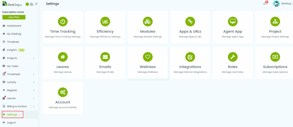 Step 1: From the admin left panel, click on Settings.