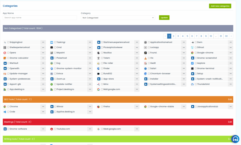 Step 4: The interface that opens will show a list of apps separated by categories.