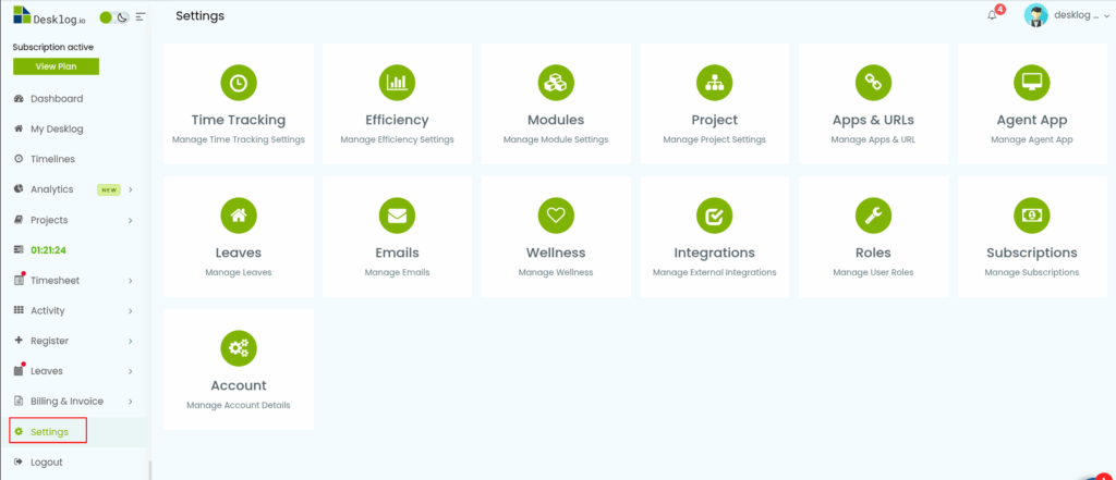 Step 1: From the admin left panel, click on Settings.