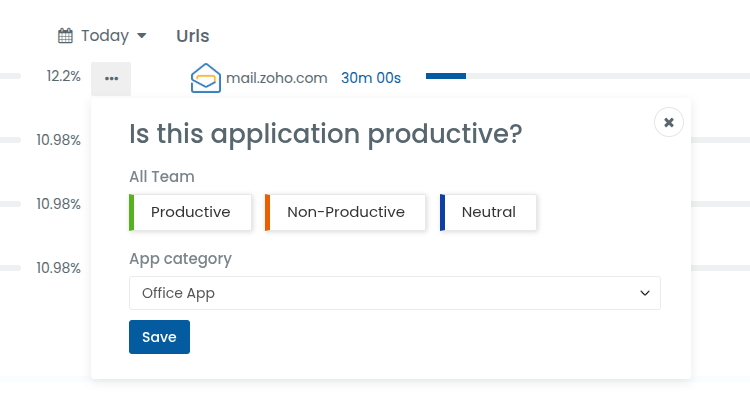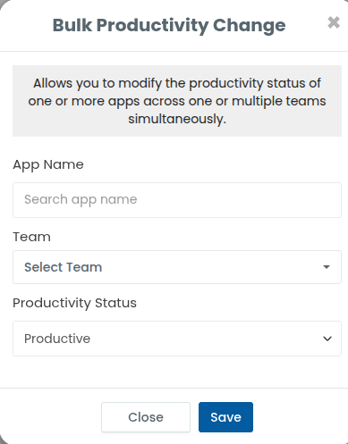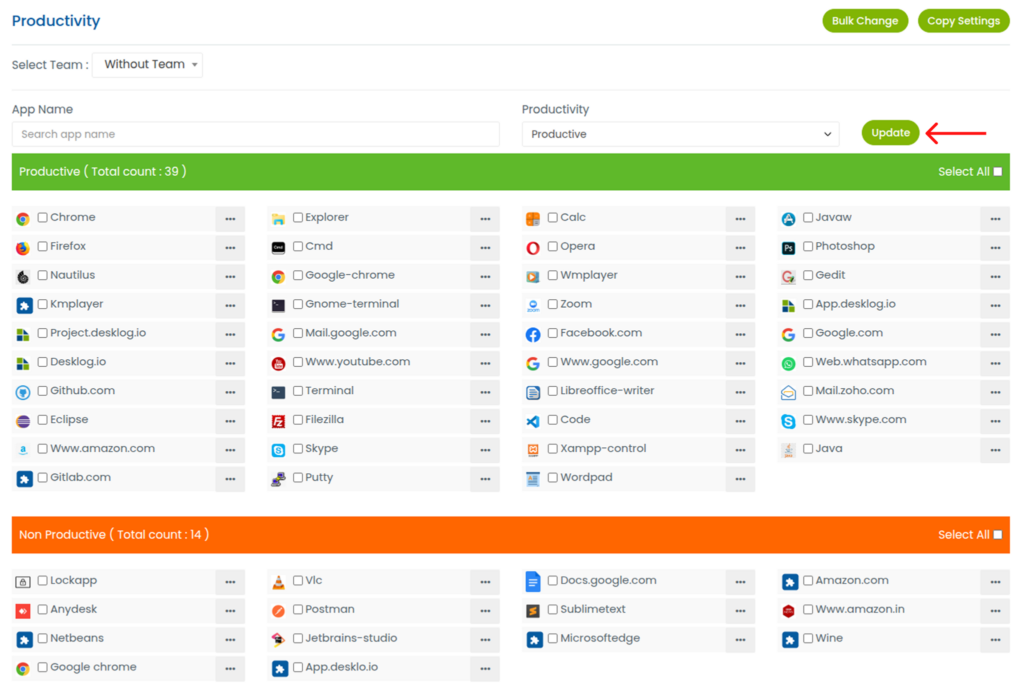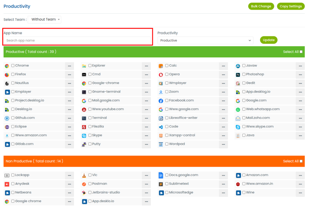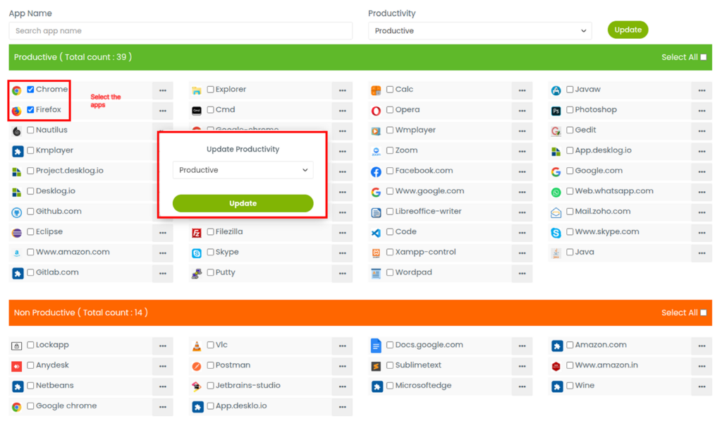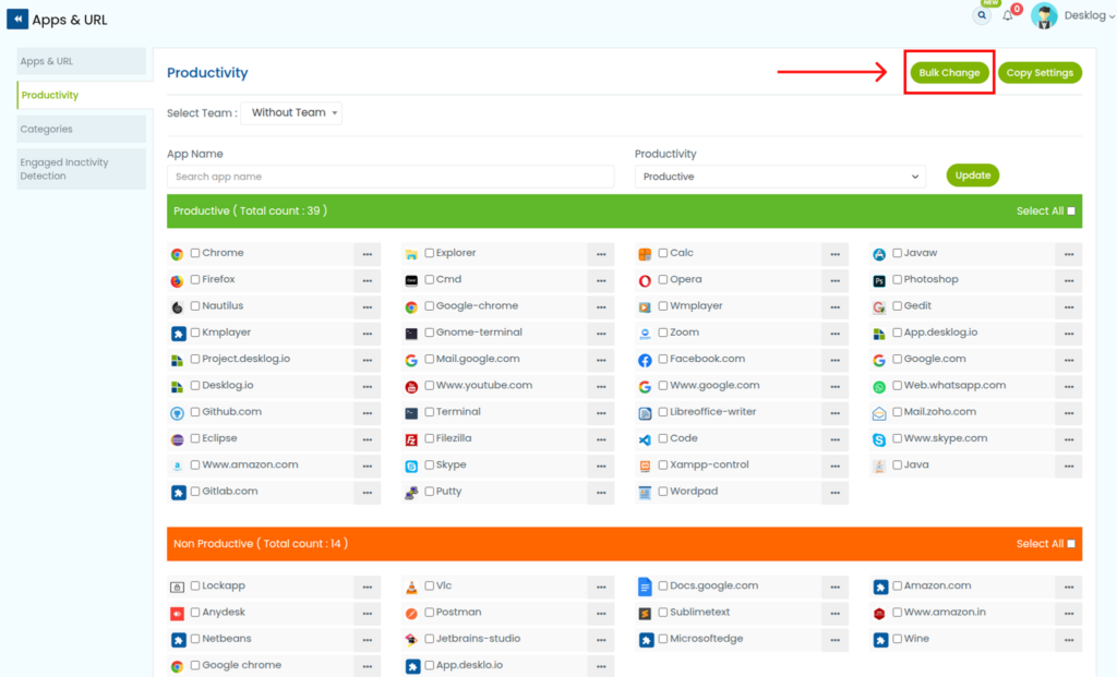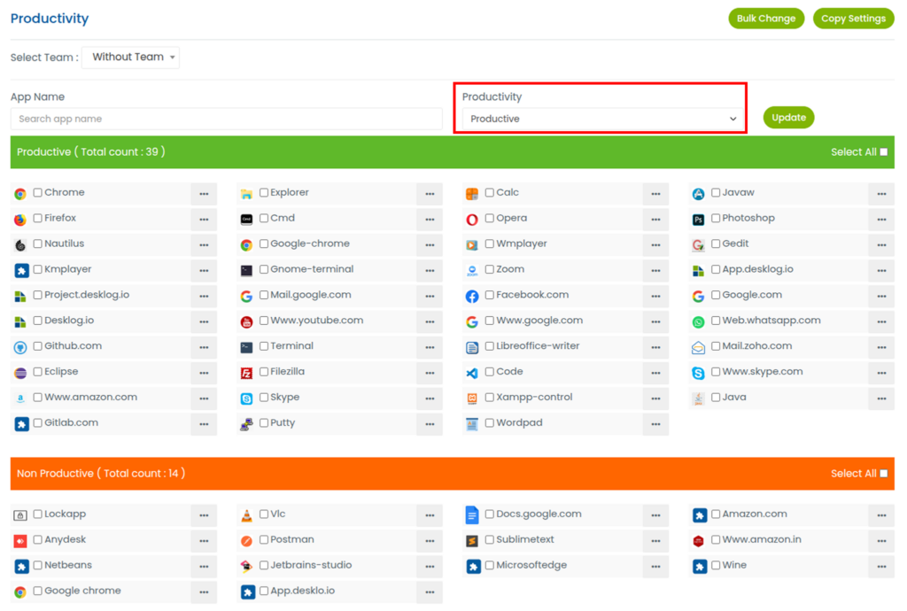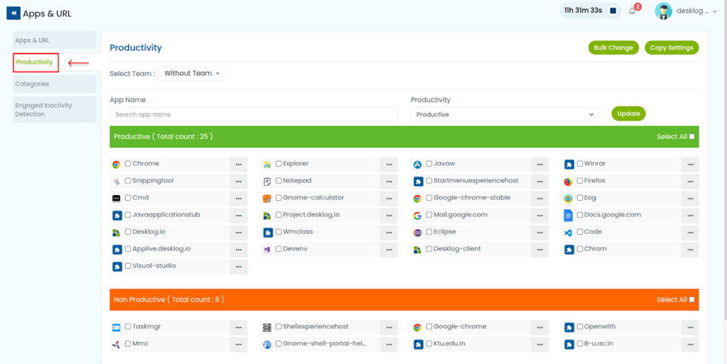 Only the Admin or Desklog account owner has permission to modify an application’s productivity classification.