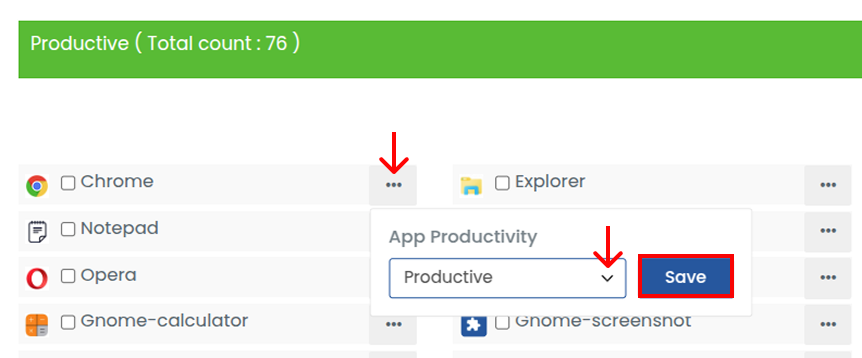- Select the desired productivity category from the dropdown.