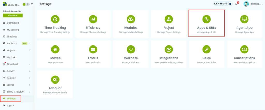 - Go to Settings. Select App/URL’s.