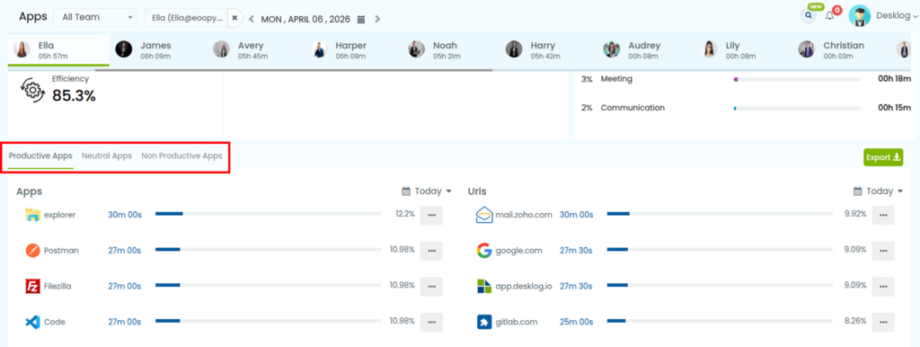 - Scroll to the app usage section categorized as Productive, Non-Productive, and Neutral.