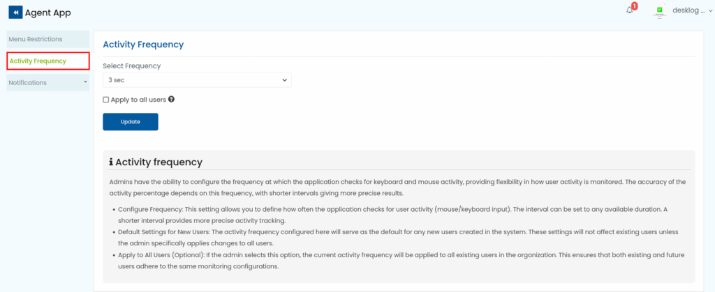 Step 3: Select Frequency from the drop down. This determines how frequently user activity will be tracked.