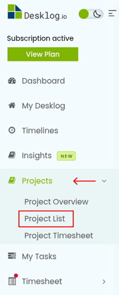 To copy a task, go to Projects in the left menu bar and select Project List.