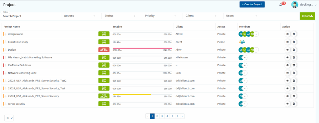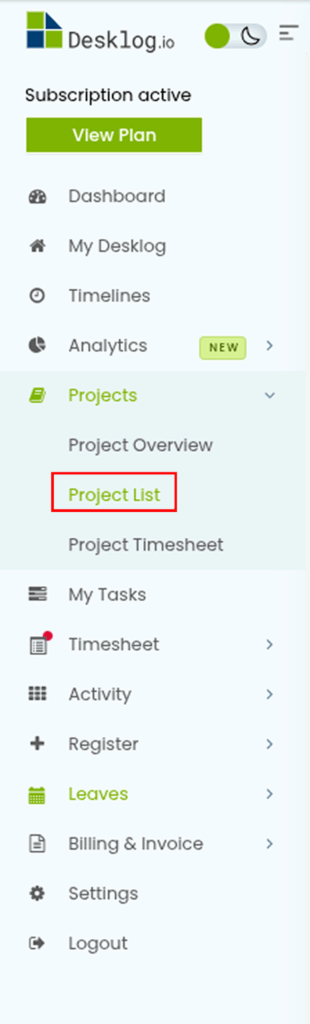 To create a sub-task in Desklog, go to Projects and select Project List.
