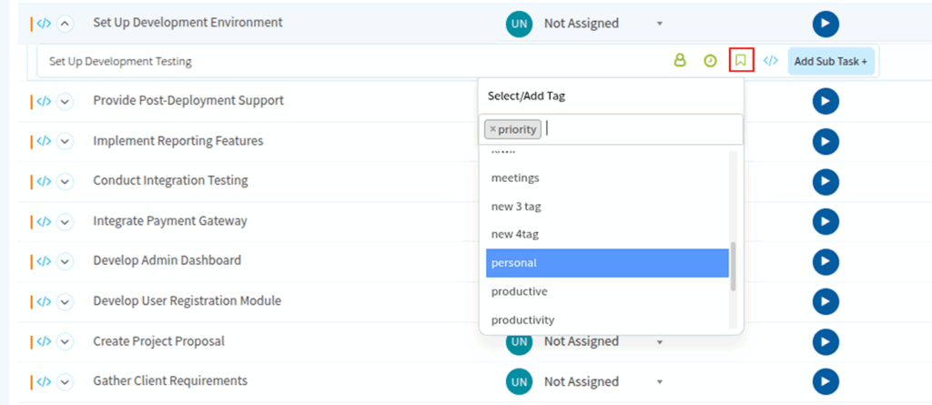 To add task tags, click on the tag icon and select the relevant tags from the dropdown.