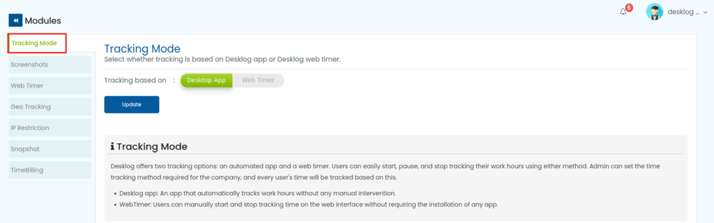 Step 6: After configuring these settings, click Update. Your web timer is successfully enabled.