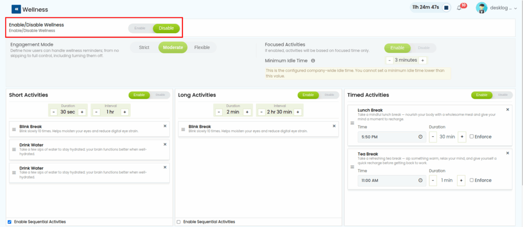 Step 3: Navigate to the section titled Enable/Disable Wellness on the top left of the window.