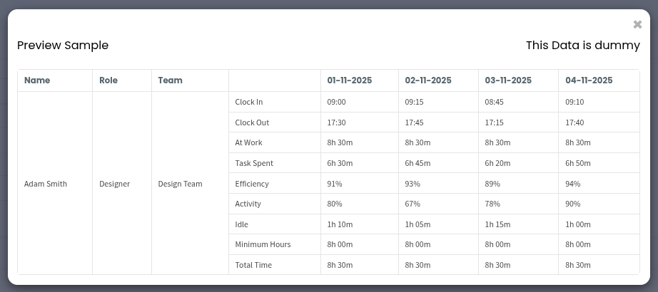 Click Preview Sample to view a preview of your timesheet report.