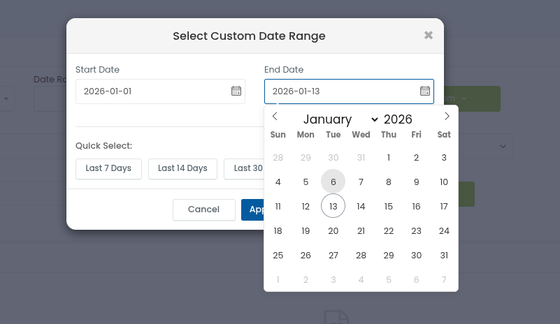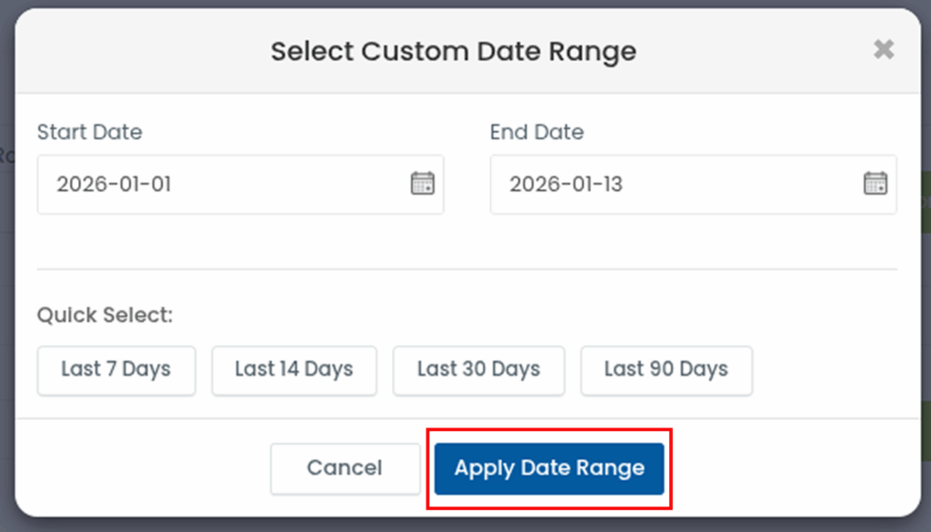 After selecting the dates, click Apply Date Range.