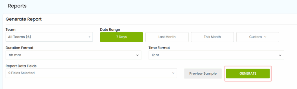 After setting all the required options, click Generate to download your customized timesheet report.