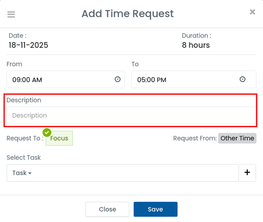 In Desklog, you can manually enter your time by sending a time request for the time that you have worked.