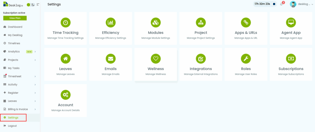 When a user stops working but remains logged in, Desklog may record extended idle time until the end of the day.