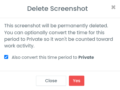 Follow the steps below to mark tracked time as Private when deleting screenshots in Desklog: