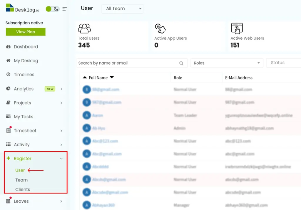 To set geolocation for an individual user, go to Register and select User from the menu.