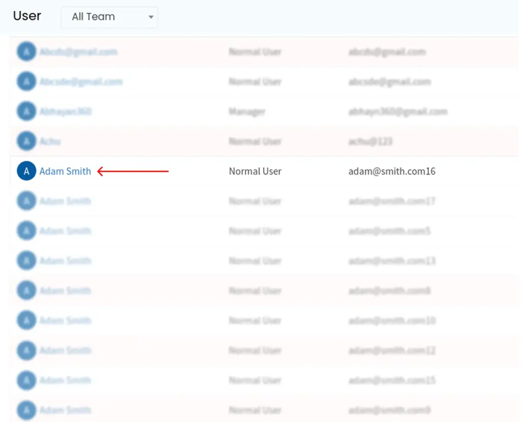 From the user list, choose the specific user for whom you want to enable geo tracking.