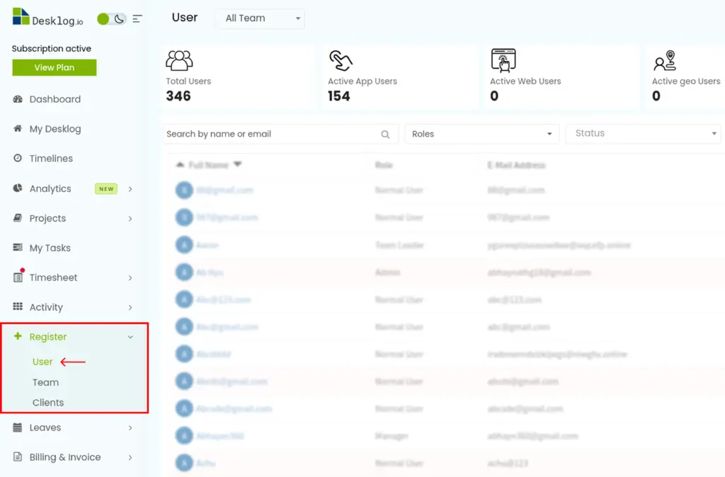 Step 1 : In the admin left panel, click on Register and then click on User.
