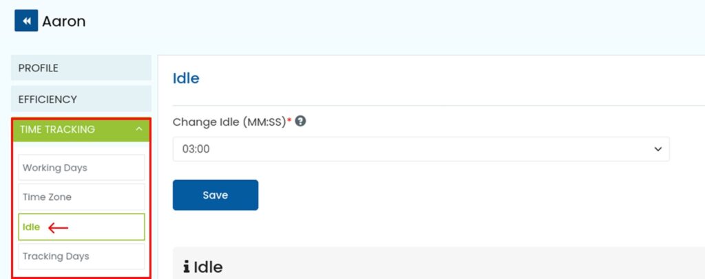 Step 3 : From the user profile that opens, click on Time Tracking and click on Idle.