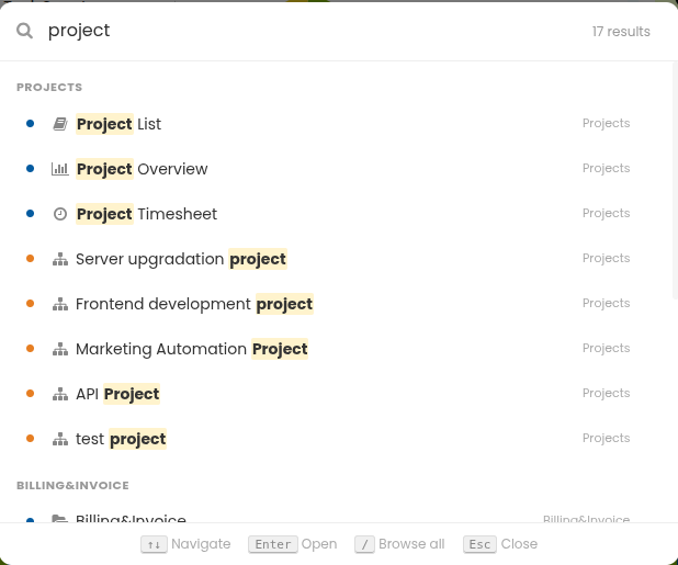 The Global Search feature helps you quickly access settings, features, projects, and tasks with ease.