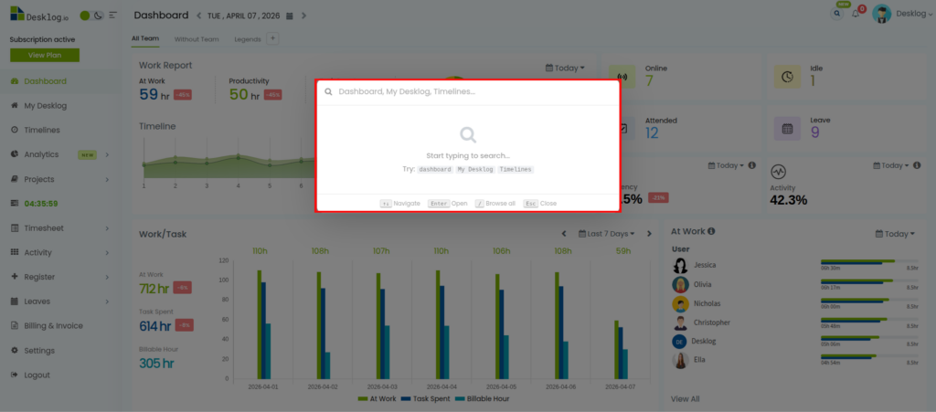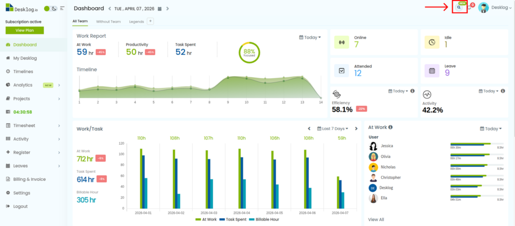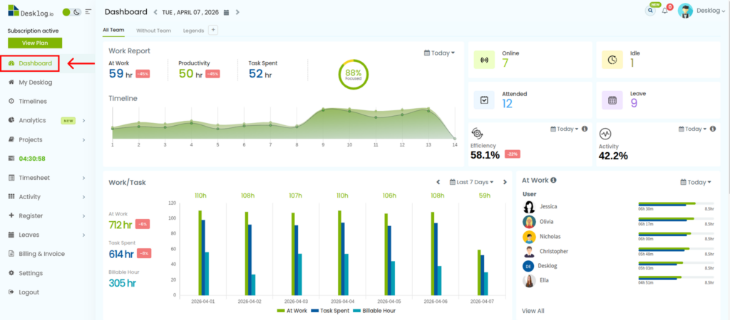 Step 1: Open the Desklog Dashboard.