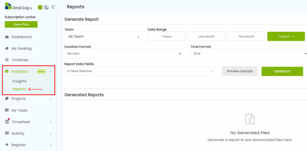 Step 2: In the page that opens, you have the option to filter reports by team, name/ email, month and year.