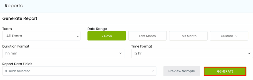 Step 2: In the page that opens, you have the option to filter timesheets by team and date (daily, weekly, monthly).