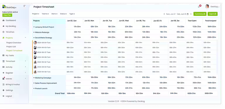A desklog project timesheet serves as a reliable record of how employees work on their projects. This precision is vital for understanding where time is invested, ensuring that tasks are adequately addressed, and identifying areas where improvements can be made. It helps prevent overestimation or underestimation of work hours, enhancing the overall efficiency of your business.